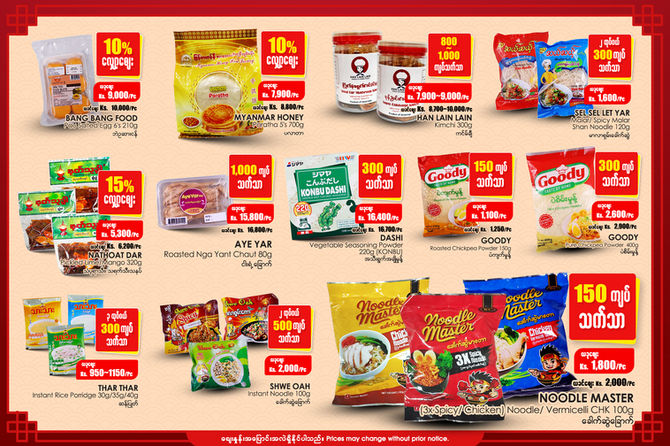 နှစ်သစ်ကူးကိုကြိုဆိုတဲ့ အထိမ်းအမှတ်အနေနဲ့ နှစ်ကူးအတွက်လိုအပ်တဲ့ ပစ္စည်းများ နှင့် အခြားသောအိမ်သုံးပစ္စည်းများကို အထူးဈေးနဲ့ Jan 29 မှ Feb 18 အထိရောင်းချပေးသွားမယ့် Promotion
